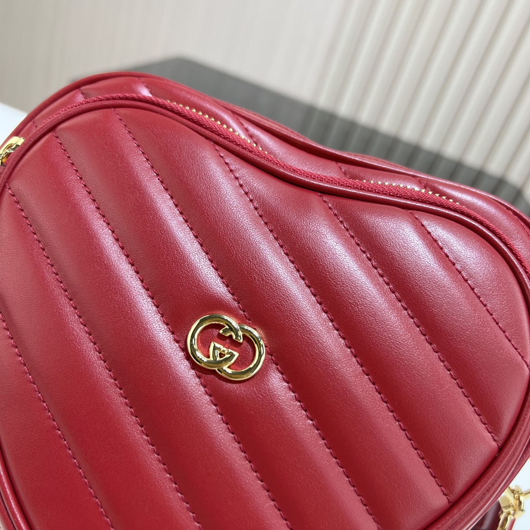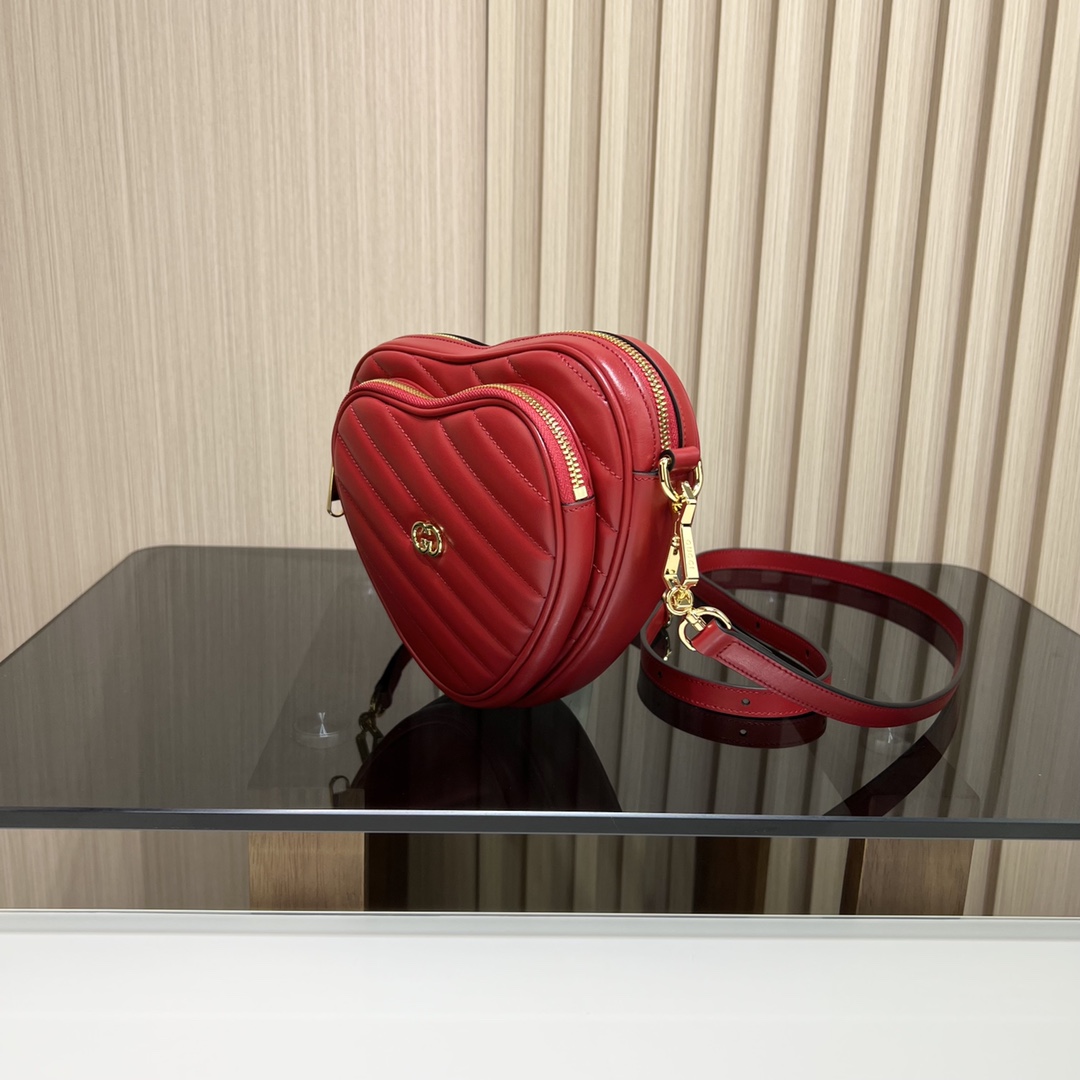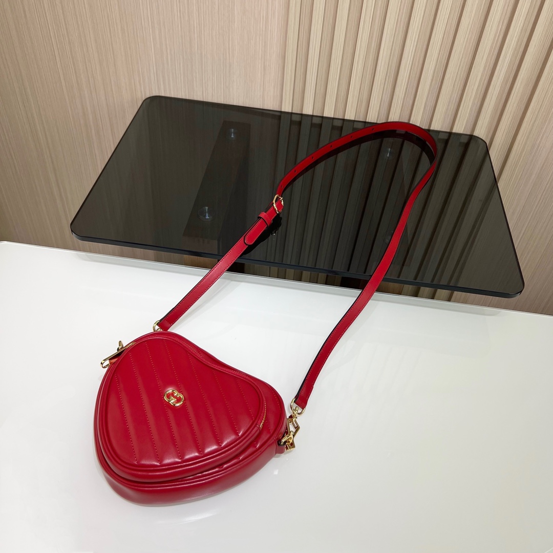 구찌 인터로킹 G 미니 하트 숄더백 레드